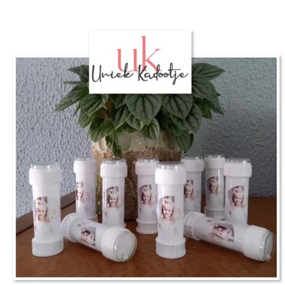 Een gevulde bellenblaas met tekst en/of afbeelding. Meestal wordt er een foto gekozen.