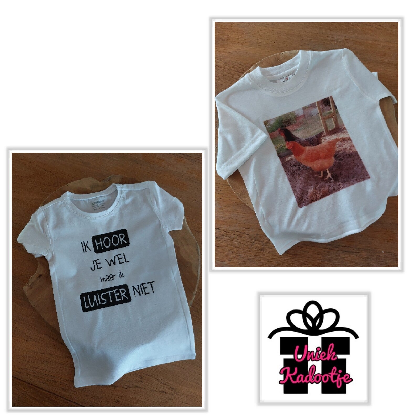 Wilt u een rompertje, shirtje of wat dan ook laten bedrukken? Neem contact met mij op over de mogelijkheden. Heeft u zelf een kledingstuk wat bedrukt moet worden, geen probleem. Bedrukken kan al vanaf 5,50 euro.