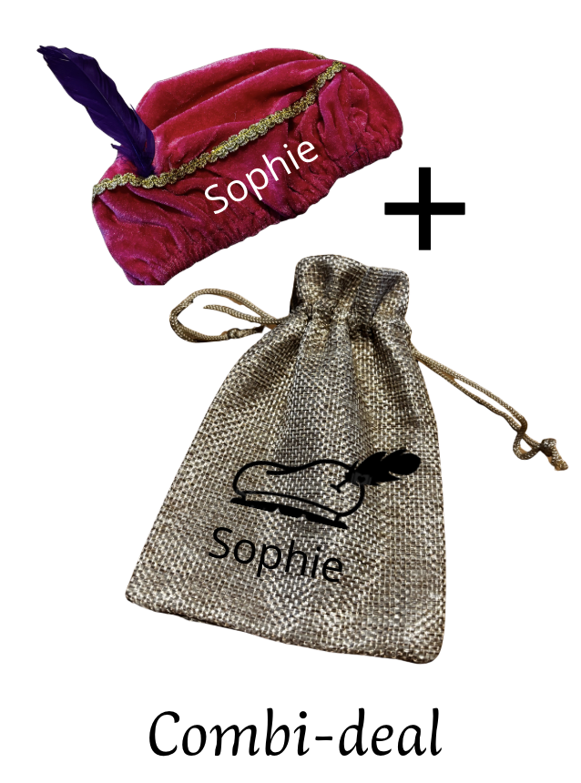 Je kunt kiezen uit 2 verschillende opdrukken, een mijter van sinterklaas of een pietenmuts.